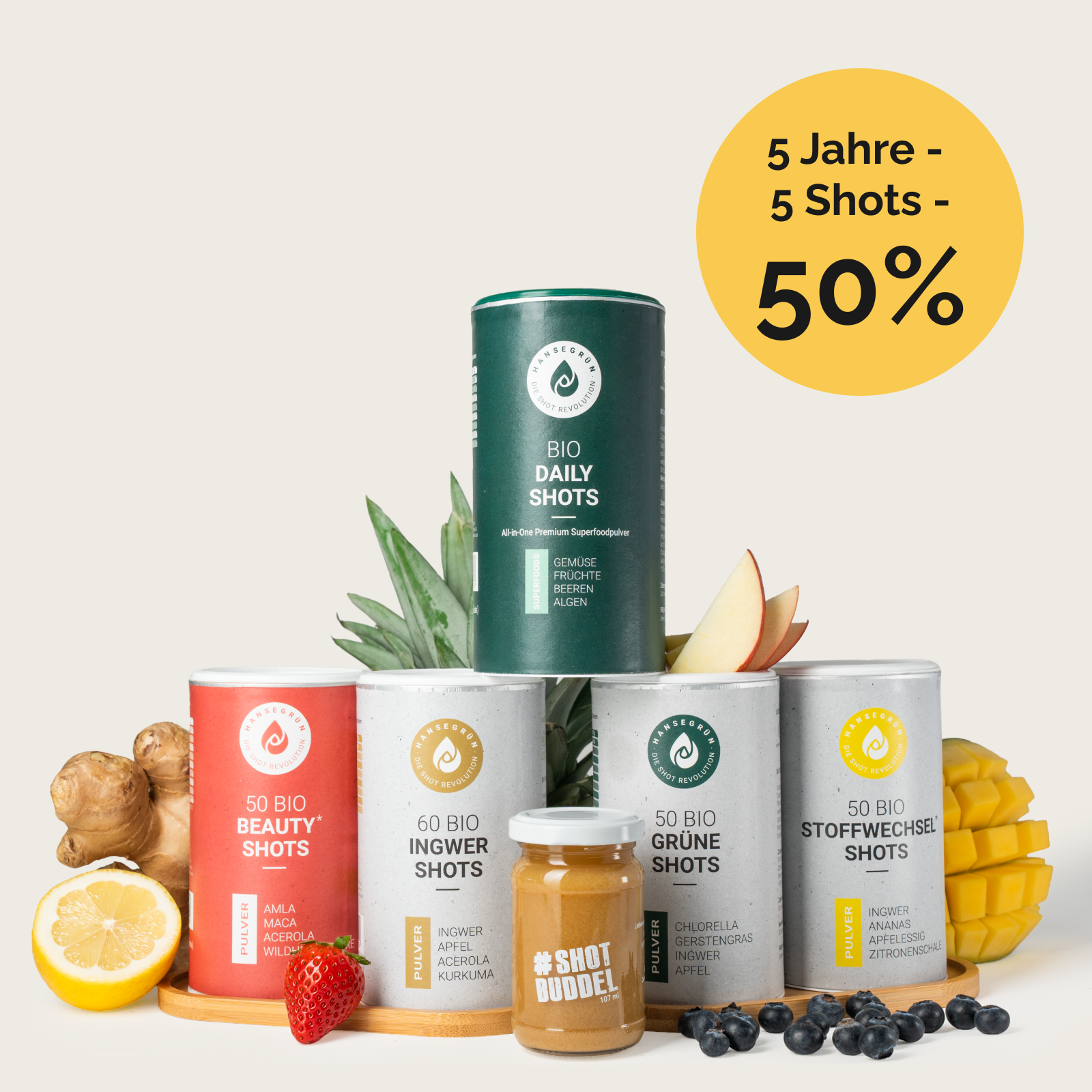 Unser Ziel ist es durch einfache, leckere & vor allem gesunde Produkte neue Routinen zu kreieren, die zu einem gesünderen und aktiveren Lebensstil führen. Inzwischen ist es uns gelungen bei Produkten wie Shots, Vitaminen & Proteinen neue Maßstäbe zu setzen.