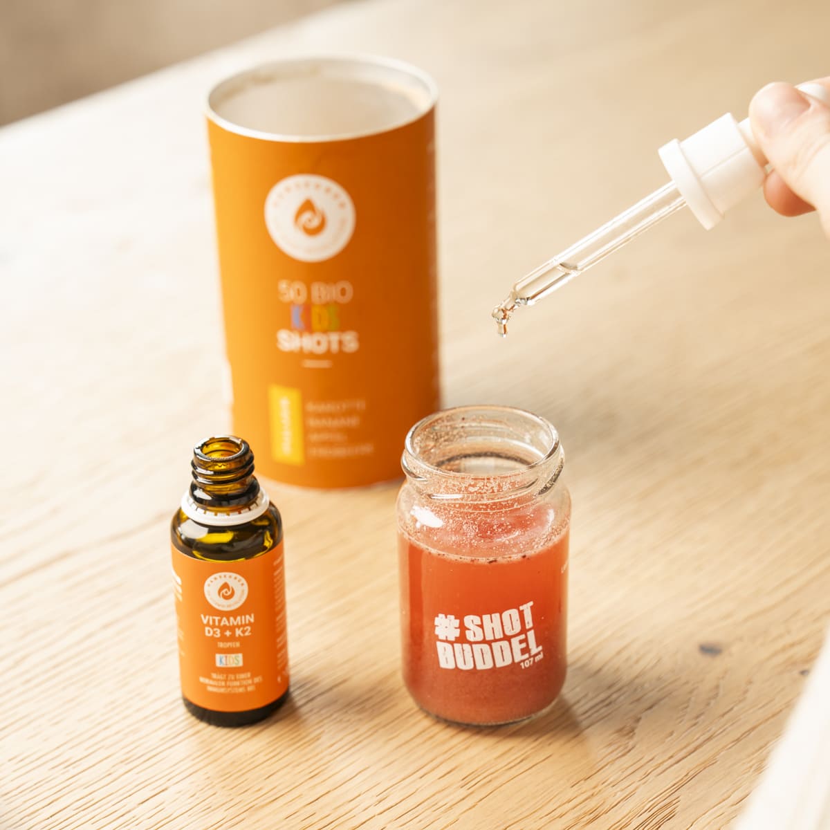 Auf jeden Fall! Du kannst alle Shots zusammen mischen - dafür eignet sich der Morgen perfekt - oder jeden Shot einzeln trinken.