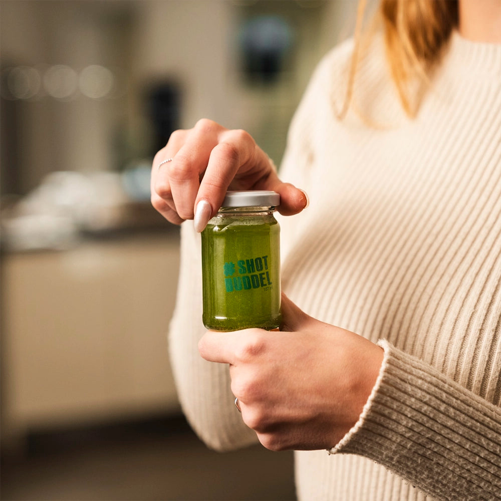 Eine Dose unserer Shots ersetzt bis zu 60 Einmalshotflaschen und ist in wenigen Sekunden zubereitet. Einfach Saft in die mitgelieferte Shotbuddel füllen, einen halben TL Shotpulver hinzugeben und kräftig schütteln. Fertig ist der Shot für etwa 50 Cent.