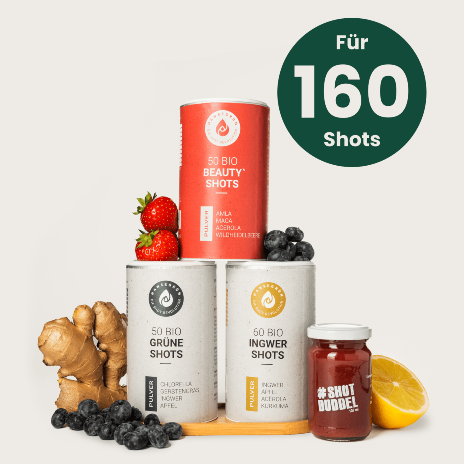 Auf jeden Fall! Du kannst alle Shots zusammen mischen - dafür eignet sich der Morgen perfekt - oder jeden Shot einzeln trinken.